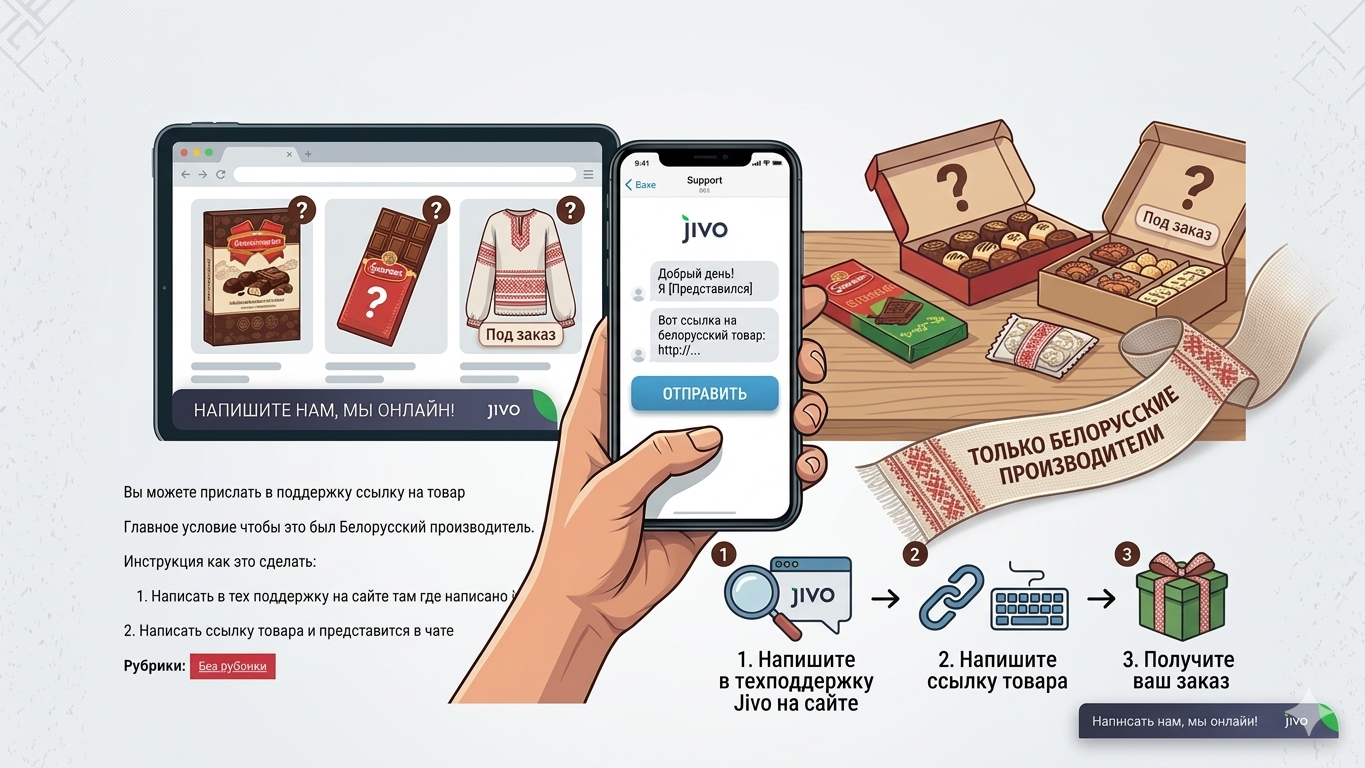 Вы можете прислать в поддержку ссылку на товар Главное условие чтобы это был Белорусский производитель…